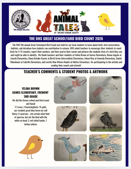 Check out our OHS eBook Educational series! The series is intended to educate children on the basics of animal care. You can also read up on some of the animals cared for at the OHS Wildlife Rehabilitation Center.